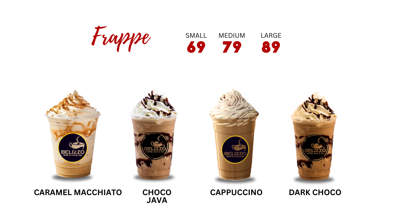 Our Frappes are crafted with only the finest ingredients, including premium coffee, milk, and flavor syrups.